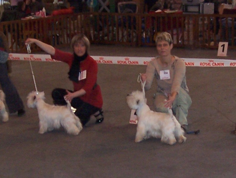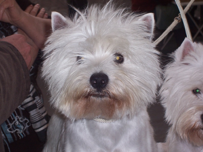 très jolie tête bien typée avec excellentes proportions féminimes - TB occlusion - oreilles bien attachées - oeil de bonne forme - bon stop avec bon crâne - chanfrein bien proportionné avec belle pigmentation - chienne bien charpentée et TB ossature - dessus solide avec bonne poitrine - TB attache de queue - AR mains bien musclés - TB texture et proportions - pince légèrement à l'AV