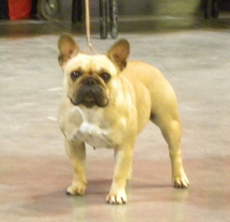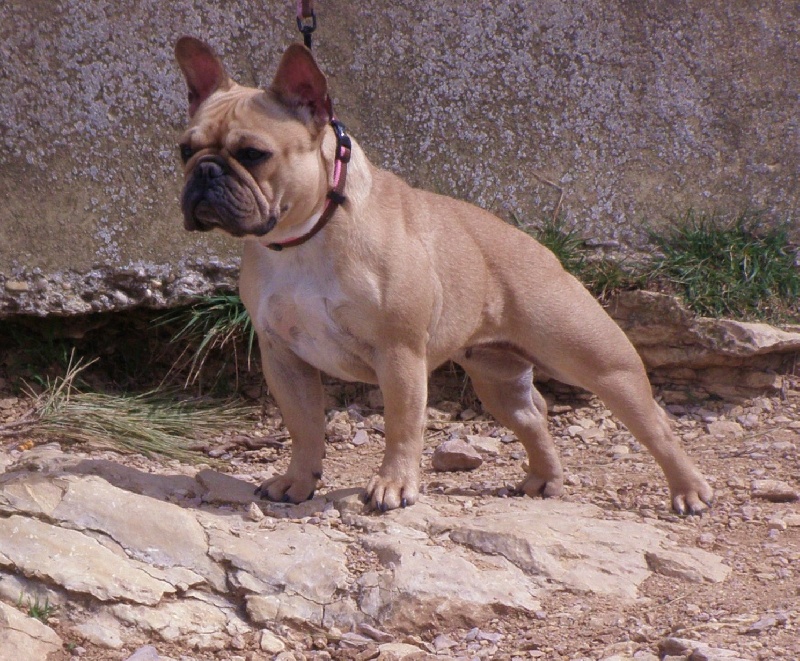 puissante et feminin avec une bonne ossature, ex pigmentation ,bonne angulation avant et arriere ,queue suffisante ,construction courte avec un RB marqué ,jolir tête ,ex crane stop,bon volume de museau ,ex yeux couleur et expression, bon rapport crane museau ,oreille correcte ,denture correcte ,allure correcte.