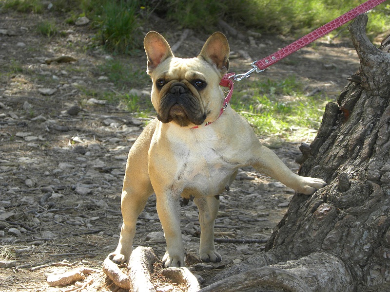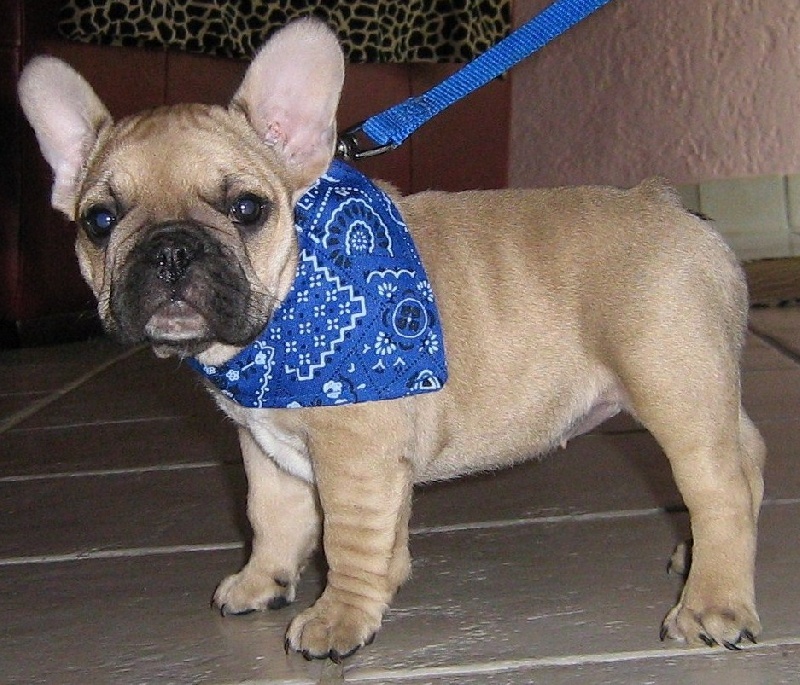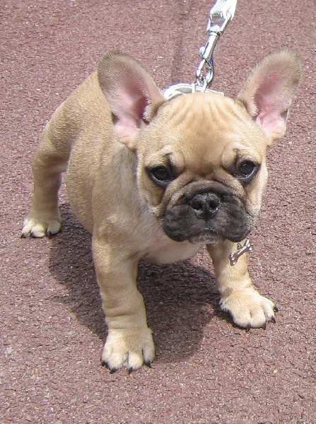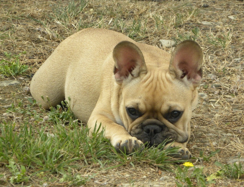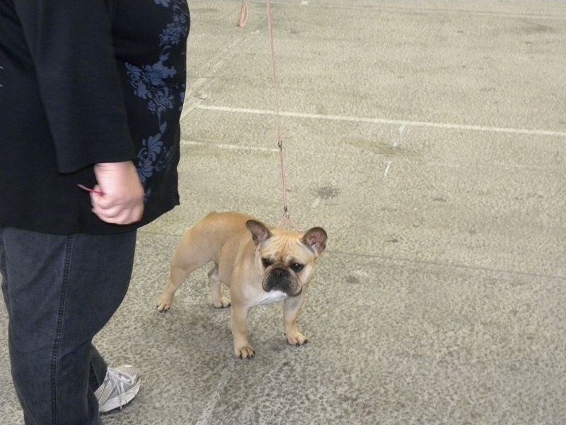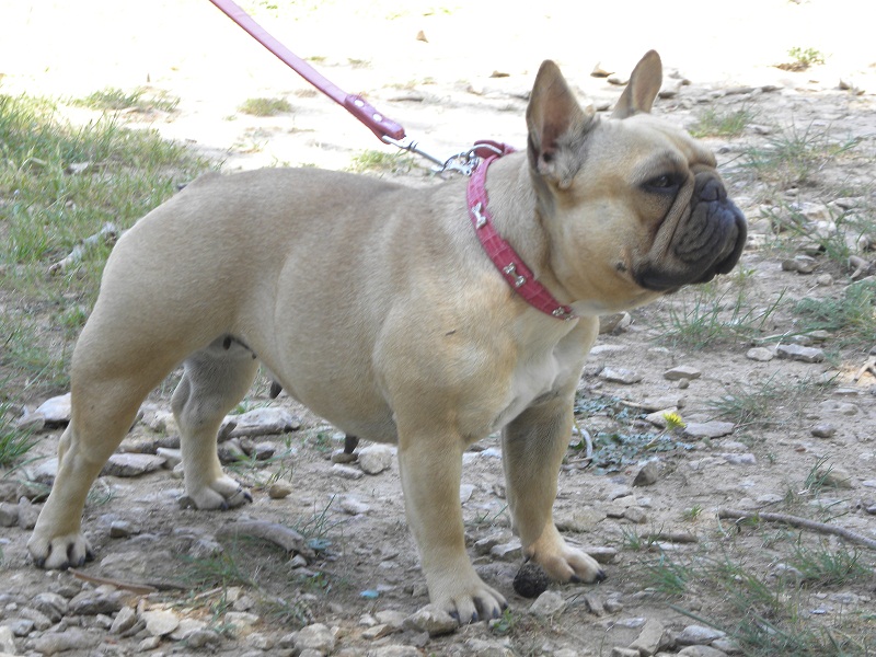 femelle de bonne taille ,bonne tête avec bon menton,bien ridé , B yeux foncés ,bonnes oreilles ,poitrine large ,bonne ossature ,corp trés court bien rond, B A.R main bien musclée , marche bien.