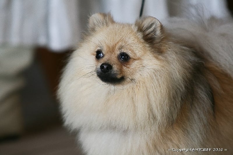 Crème.Bon type.Excellente pigmentation.Corps compact.Excellent poil.Fouet bien inséré.Très jolie fourrure dense.Très belles allures dégagées.