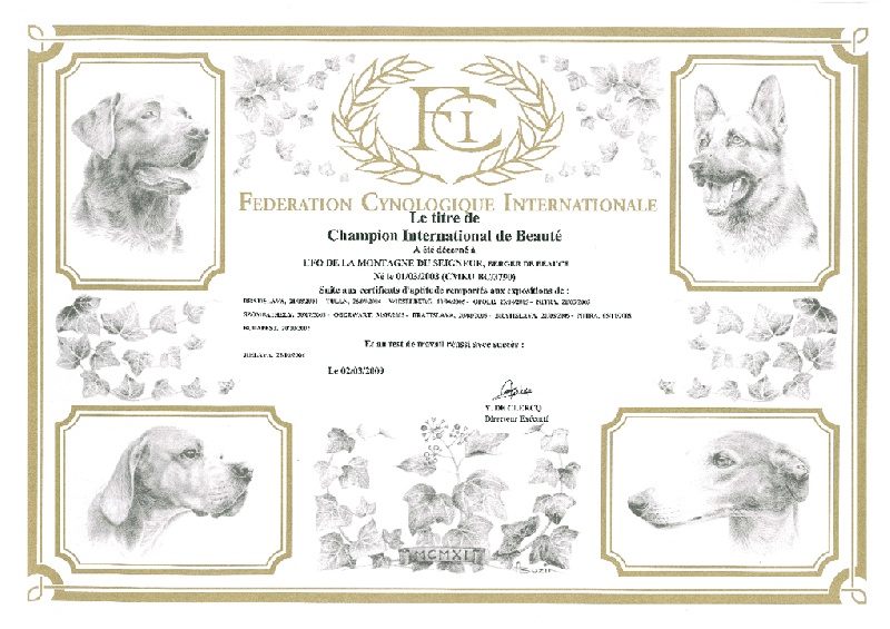 Il est étalon recommandé, indemne de dysplasie, Champion International De Beauté.