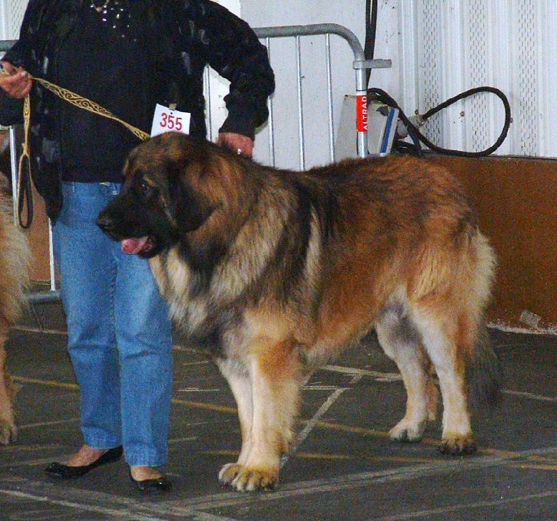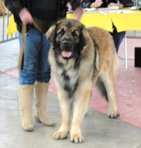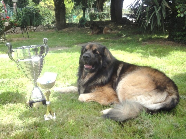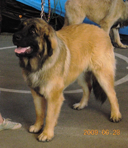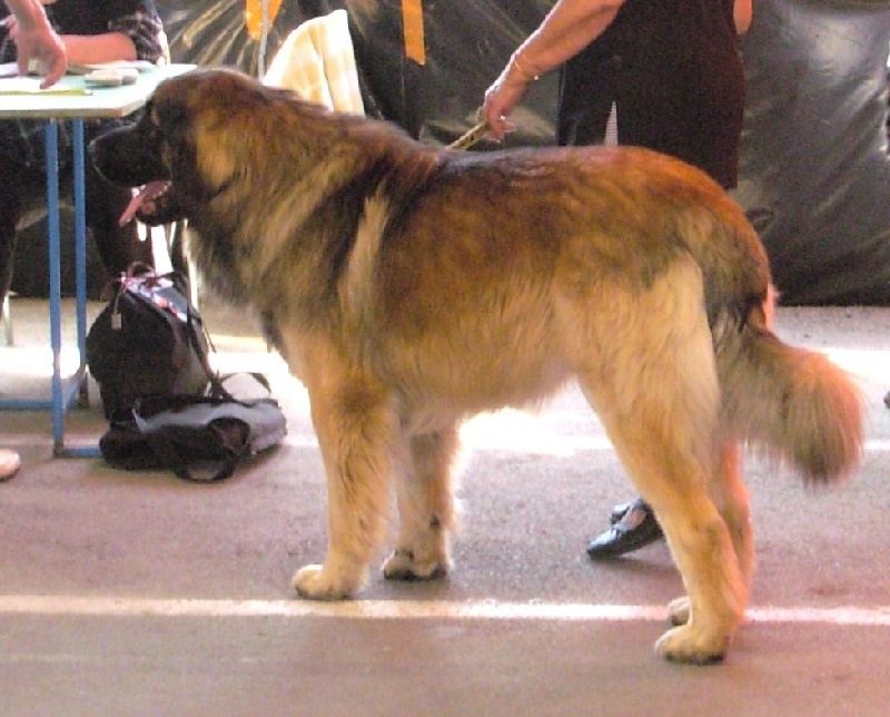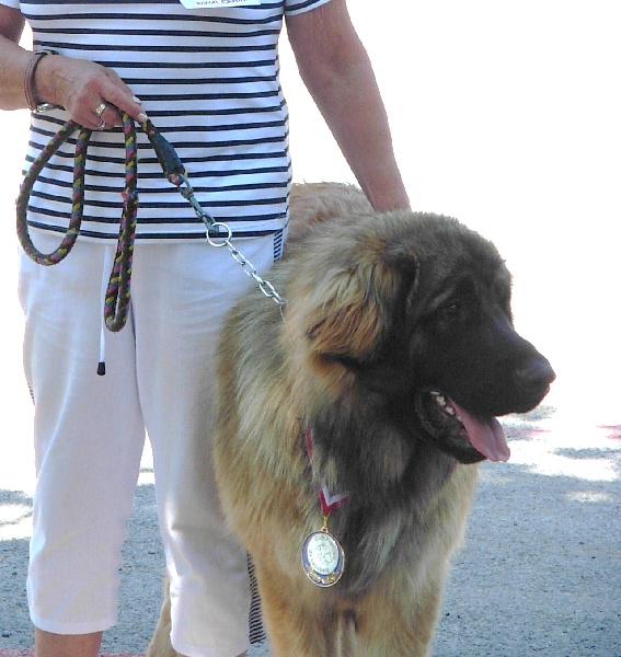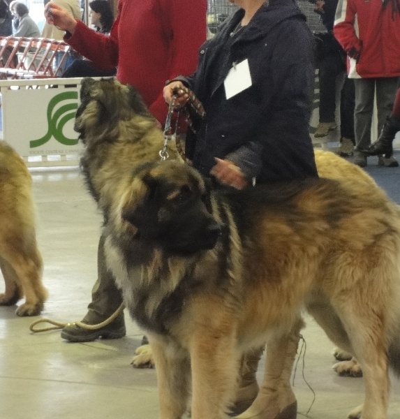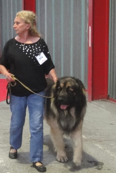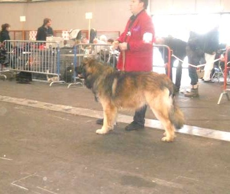 Grand chien puissant, TB angulations, exc poitrine, exc aplombs, exc robe et fourrure, exc tête expressive malgré des yeux un peu ouverts et des babines un peu lâches.Serré derrière, ouvre un peu les coudes, allure de profil un peu courte. Fouet roulé