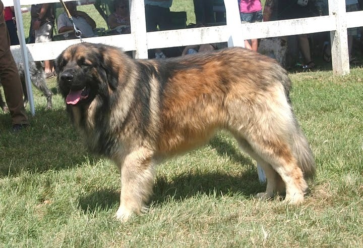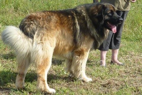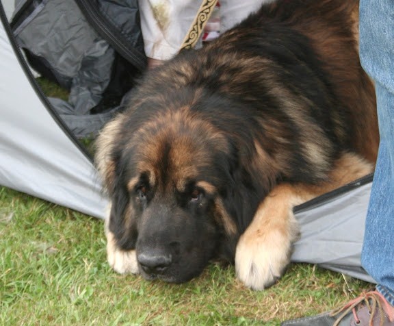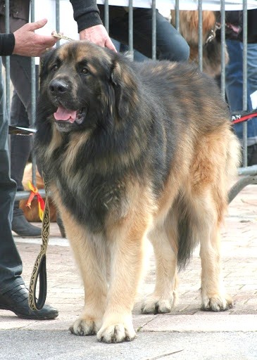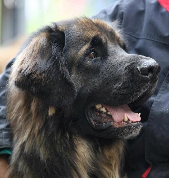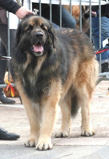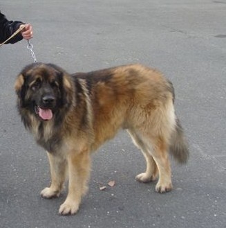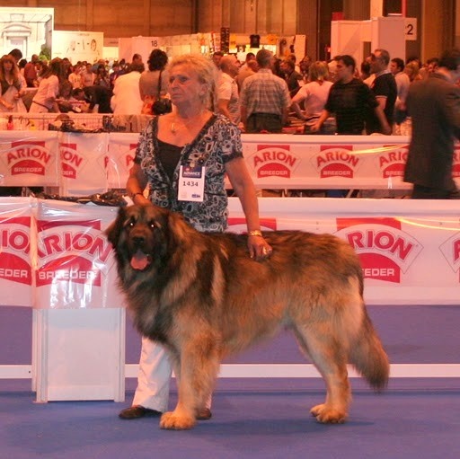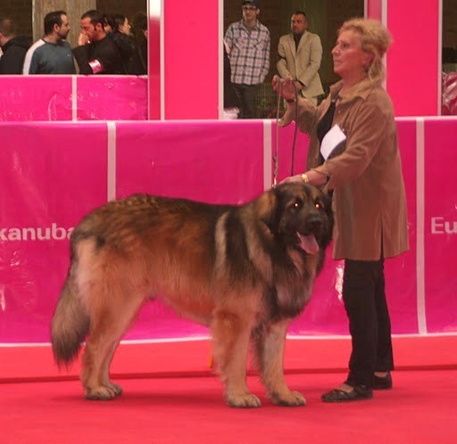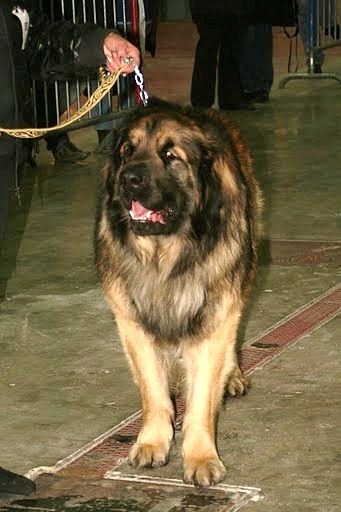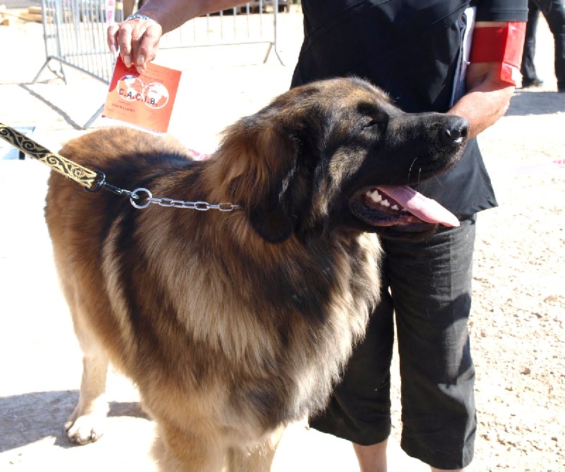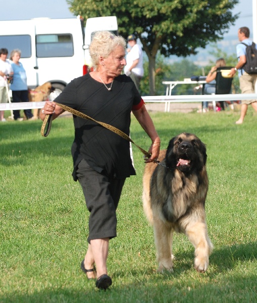 Grand chien puissant, TB angulations, exc poitrine, exc aplombs, exc robe et fourrure, exc tête expressive malgré des yeux un peu ouverts et des babines un peu lâches.Serré derrière, ouvre un peu les coudes, allure de profil un peu courte. Fouet roulé