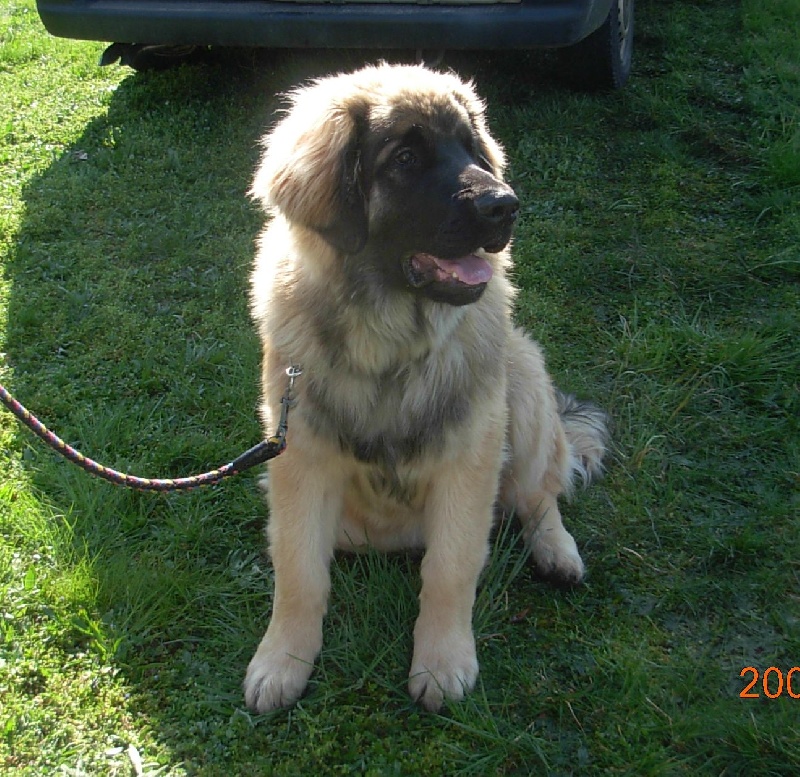 10 mois, gabarit moyen, bien construit,exc ossature, exc ligne dessus, poitrine déjà bien développée, aplombs av-ar corrects, exc angulations av-ar, exc fouet, exc fourrure teinte et texture. Tête longue, DCC, exc pigmentation babines et gencives, exc masque, oeil bien teinté, paupières et babines trop ouvertes. Allures satisfaisantes pour son âge, joli chien déjà puissant pour son âge.