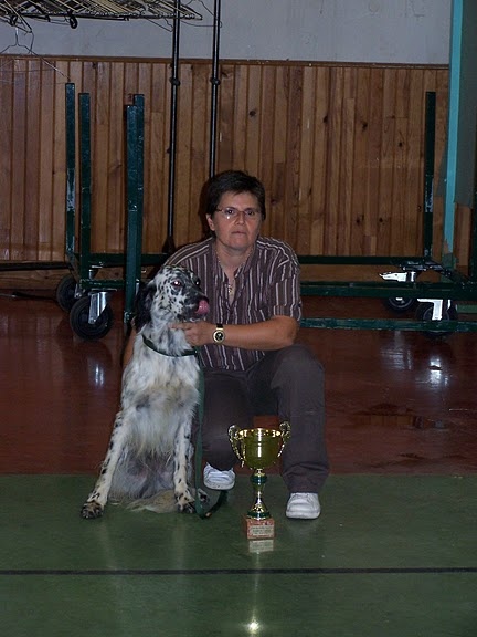 59 cms Exc modèle- Tête bien setter-Exc sortie d'encolure, Exc ligne de dos, Exc rayons AV et AR, poitrine correcte, Exc pigmentation et soiesdémarche facile et élégante.