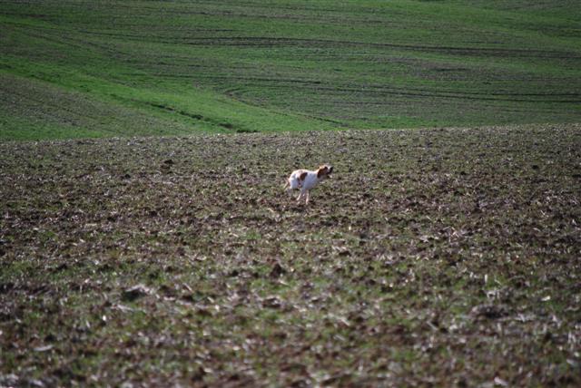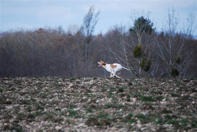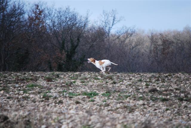 Ellora est né de l'union d'Astrée et de Titan et elle plait beaucoup à Franck GINESTET et Robert PIASER qui l'ont eu plusieurs fois à l'entraînement en Espagne. C'est une petite chienne pétillante avec de très belles allures et une grande passion pour les oiseaux. C'est un petit modèle sportif et les qualités de travail qu'elle montre, aujourd'hui, me font espérer un avenir serein. Elle n'a que très peu chasser cette année mais ses séjours andalous l'ont fait beaucoup progresser et avec une morphologie qui lui confère des allures assez remarquables, Ellora devrait confirmer le potentiel que nous entrevoyons en elle.