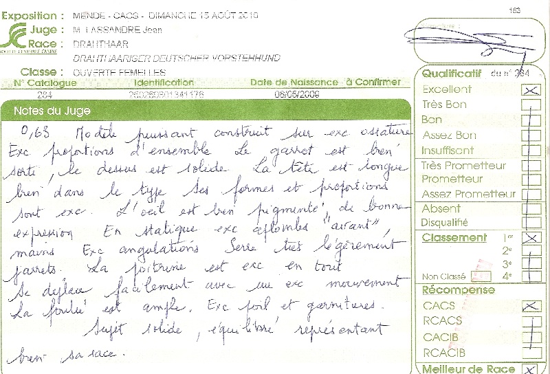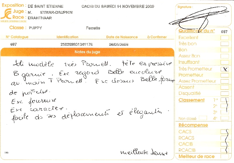 - CACS MEILLEUR DE RACE 3EME DU 7EME GROUPE