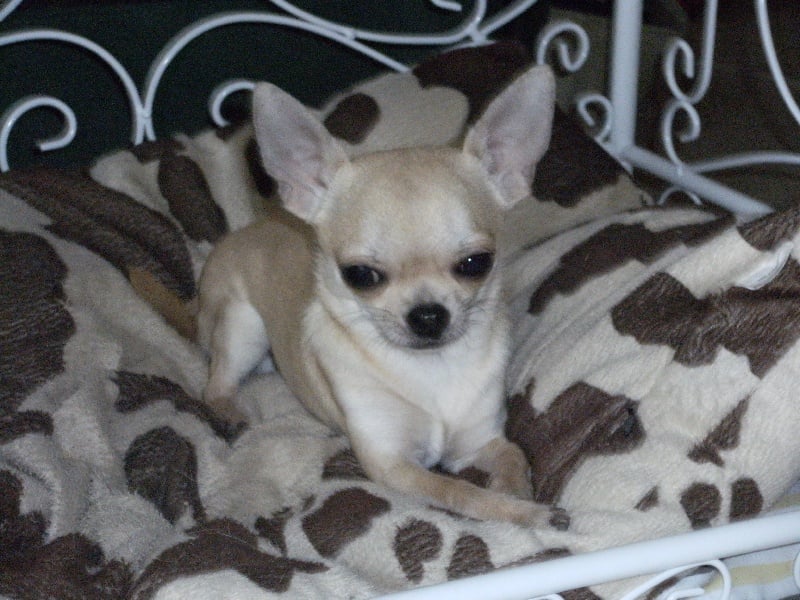Tête correct pourrait étre plus pommée, dentition correct, oreilles B formes. Ossature correcte, bonne poitrine pour 16 mois, excel corps, B arrière, , le fouet pourrait être porté plus haut.Démarche dans son ensemble correct. Chien avec bon tempérement Fontanelle pourrait étre plus fermé.