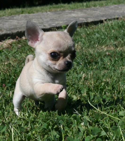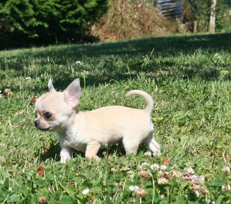 10 mois, DCC, joli modèle racé sans stigmates de nanisme, la fontanelle fermèe, excellent pieds, excellent reins. C'est une très belle morphologie de tête. Exc démarche et port de fouet.