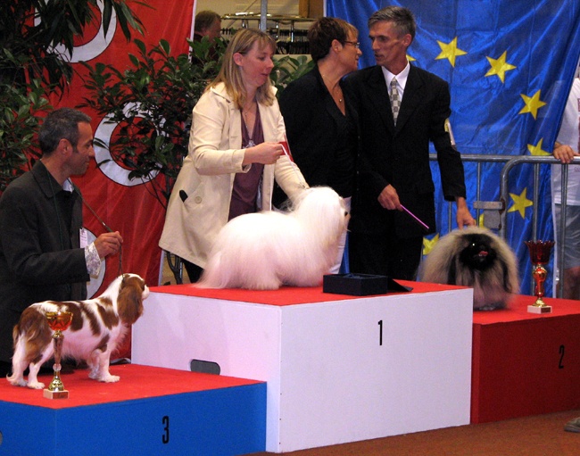 15 MOIS Première exposition en Classe OuverteJuge J.BLANGINOCAC-CACIB - MEILLEUR DE RACE - 15 pékinois inscrits3° du 9° Groupe Juge M. KLEIN