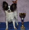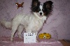 jolie tête, exc port crâne chanfrein, oreilles bien PAPILLON Bonne poitrine,attache de fouet un peu basse porté un peu timidement par moment ( normal pas sortie depuis un 1 an )démarche correcte avant et arrière main correct