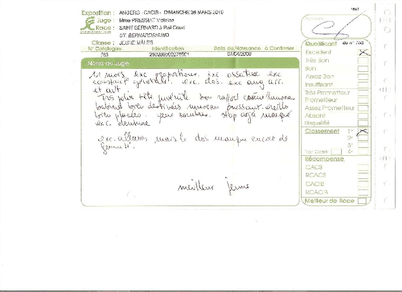 Mâle agé de 7 mois très calme, calin, aimant beaucoup jouer dans l'eau .........Pour le moment, il est très régulier dans sa construction et les applombs sont bons mais il faut le laisser grandir............!