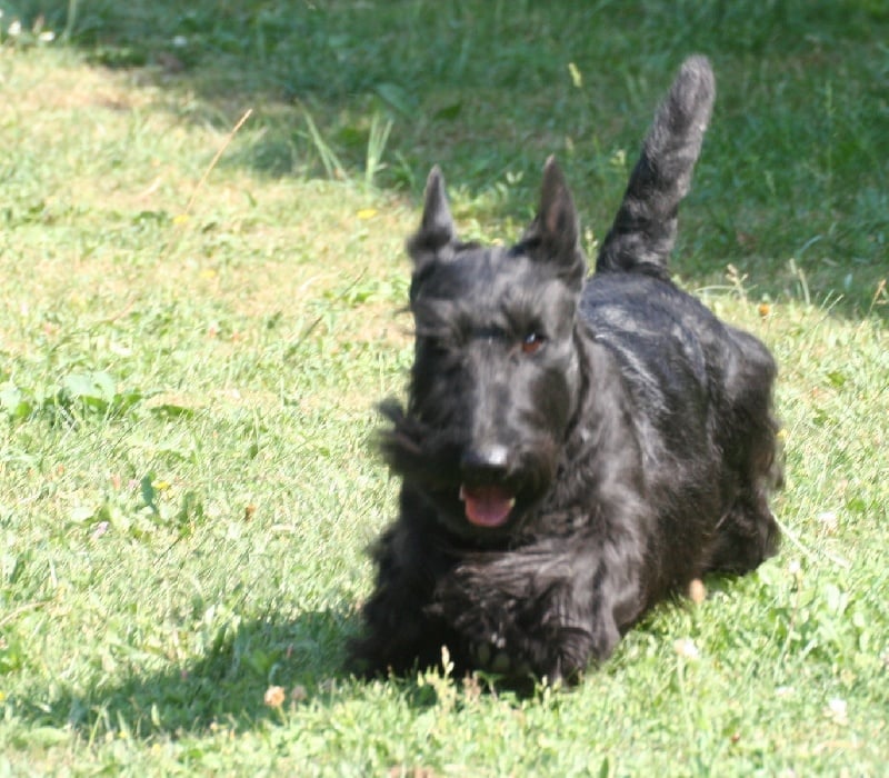 Très attentifs au caractère de nos femelles , futures maman ,nous souhaitions intégrer dans notre projet d'élevage un étalon pouvant compléter cette stabilité .Beaucoup d'équilibre dans la morphologie de Dagobert avec une tête masculine et harmonieuse . Le tout avec un poil noir , fourni et brillant .