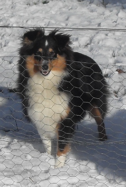 Voici "MAGGIE" La soeur de notre Hamish nous l'avons garder pour avoir du tricolore issu de la lignée de Monsoon. Cependant cette chienne qui me paraissait "correcte" est devenue très très belle. Elle est rigolotte, caline et c'est un plaisir de vivre avec elle. Elle est à la retraite tôt à cause d'une erreur du veterinaire l'an dernier - elle n'a pas vraiment récupérer donc, elle coulent ses journées doucement aux bords de la piscine....