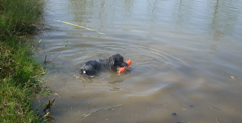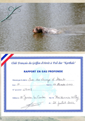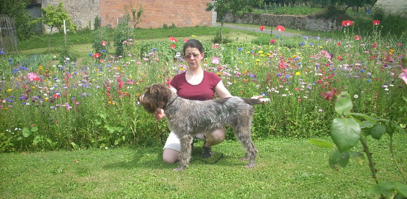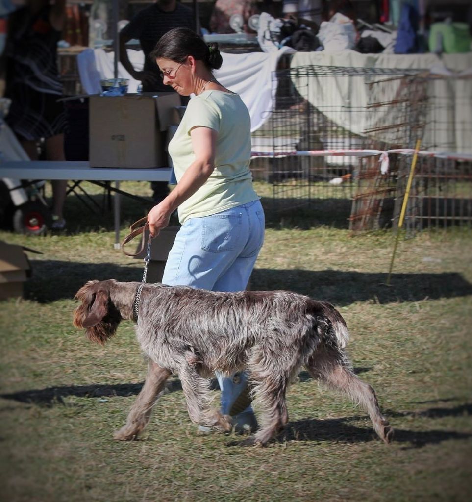 C' est la première exposition d' Era des Etangs d'ASSAT . Présentée par mon amie Yvonne , Era est une chienne timide et n'a pu faire qu' un TB . Elle travaillera et progressera ( Un bon Korthals est tellement équilibré et intelligent qu'il peu réussir avec n' importe qui ... )Commentaire du Juge :DC . Modèle de bon format , de bonne construction .Exc ossature . Le dessus se tient bien . Exc aplombs et angulations .La poitrine est bien descendue mais demande à se galber encore .Tête bien typée .L' oeil manque un peu de pigmentation .Exc poils et garnitures . Manque un peu de substance .Se déplace correctement .Chienne aimable . Ne se met pas en valeur à cause de sa timidité .