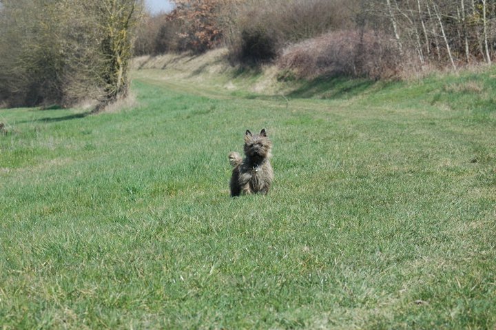 Après avoir vécu 14 ans avec une cairn terrier qui a fait partie de mes meilleurs moments, meilleurs promenades, meilleurs éclats de rire, meilleurs parties de jeu et qui aujourd'hui est mon meilleur souvenir d'enfance, nous venons de faire l'acquisition d'une petite Femelle cairn : Eclat de chocolat de la Médulienne dite Elfie.