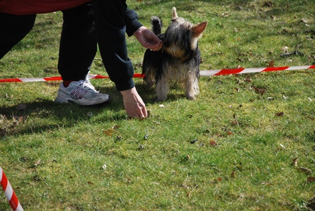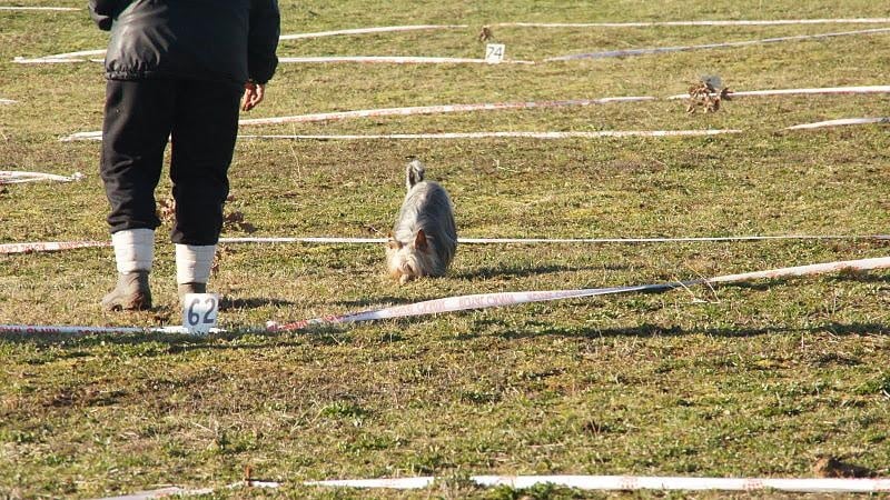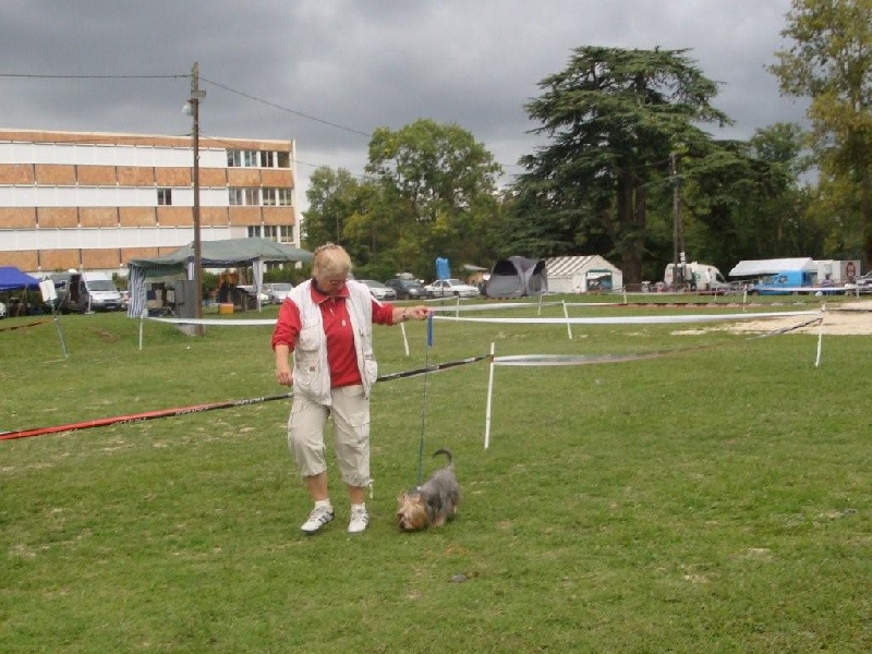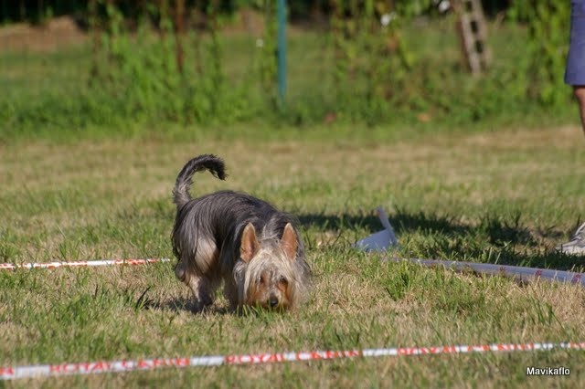 5 mois et 1 semaine...mon BB à son 2ème concours,un peu "tout fou"avec le froid du matin et sans laisse...(bcp de tentations environnantes!!hummm!!ça sent bonnnn!!!à côté!!!)OUF...les 6 truffes levées en 3mn33 ...et un petit remarquage...172,70Pts/200..4/5Bravooooo mon bébinou!!!A la saison prochaine tu rivaliseras avec "moman"!!Le prochain Silky à te battre n'est pas encore né!!!!