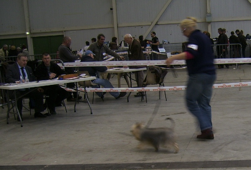 Tenue acceptable sur le ring de jugement...tout fou,tout fou sur le ring d'honneur à la vue de tous ces chiens...ah!bon??pas pour jouer??...alors pourquoi je suis là???mdr...1er CACIB à 16 mois...