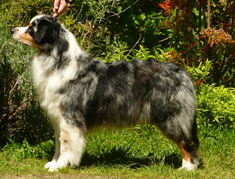 Bien typée, les oreilles sont un peu plate, mais l'ensemble du chien est de qualité et de bonne longueur et avec une exl ossature, exl jarrets et de la presence.