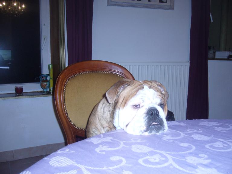 Qui se prend pour un gros bébé, très attachée à ses maitres, elle aime moins rester avec les étrangers et elle n´aime pas recevoir de congénères à la maison, ou alors il faut qu'ils se tiennent à carreau car Mlle est le chef de la meute.