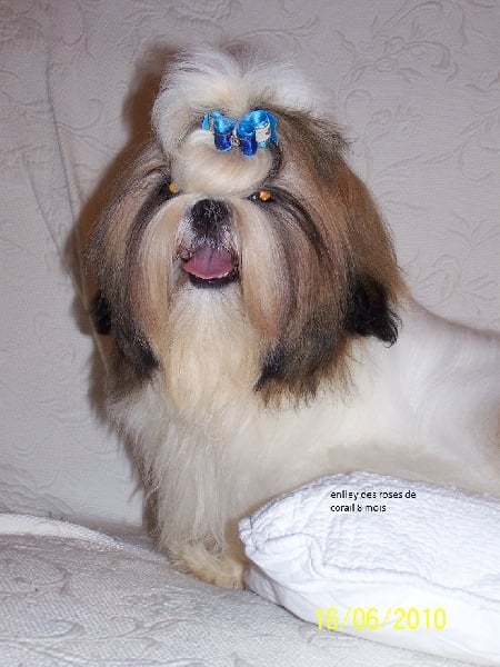 Enlley est doré et blanc;il a un tres beau nez court; de beaux yeux