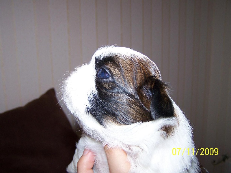 8 mois tres beau sujet,jolie tete assez large ronde,yeux bien ecartés,dentition correcte,narines bien ouvertes,museau bien carré,stop marqué,excellente encollure,dos,epaule,croupe,pieds,excellente presentation et mouvement