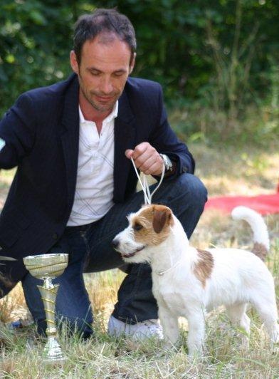 Milo is the winner of the CAC of the French Jack Russell Terrier National Show, best male, and the best female is his daughter, Steve's Eden Gloss Glam, Steve's Eden