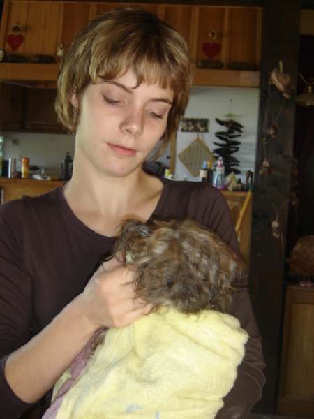 Gentil, discret, adorable, affectueux, joueur, très sociable, d'une intelligence extraordinaire, nous ne tarissons pas d'éloges devant ce bout de chien qui fait le grand bonheur de Lucie. Celle-ci passe de longues heures à entretenir sa superbe fourrure, pour son plus grand plaisir, mais aussi pour celui d'Eustache! Ce petit être aide notre Lucie a surmonter bien des épreuves, dûes à sa maladie invalidante...Eustache vit avec sa maîtresse à Clermont Ferrand, et ne vient que les "week-ends" à la maison.