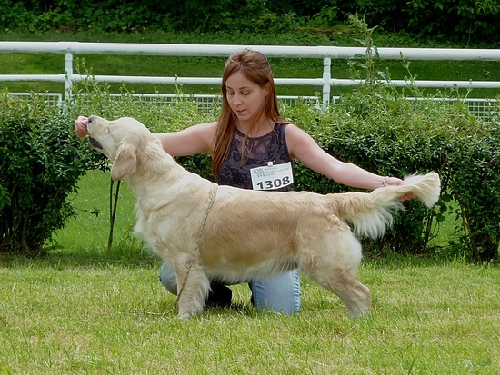 DCC. Bien dans le standard. Jolie tete feminineExc encolure, ligne de dos et attache de fouetExc angulations avant et arrieresExc mouvementExc presentation.A revoir
