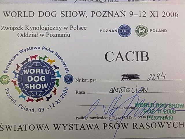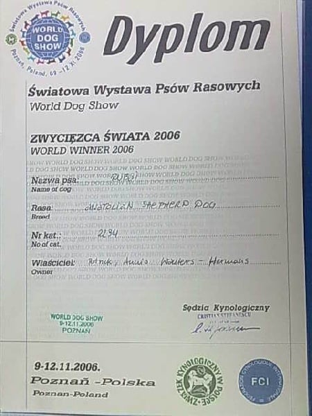 - WORLD DOG SHOW POZNAN WINNER 11 NOV 2006