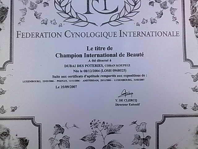 - CACIB 1 ERE EXCELLENT classe champion A MONTPELLIER 24 01 10