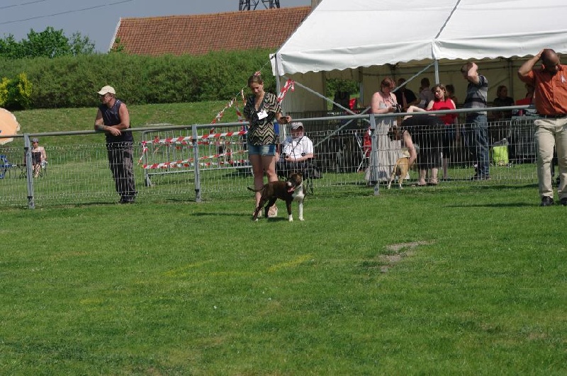 tête bien proprotionnée, exc oeil, exc denture, oreilles bien placées, exc encolure, tb ligne du dessus, ex côtes et poitrine, exc aplombs et angulations, exc dynamique.