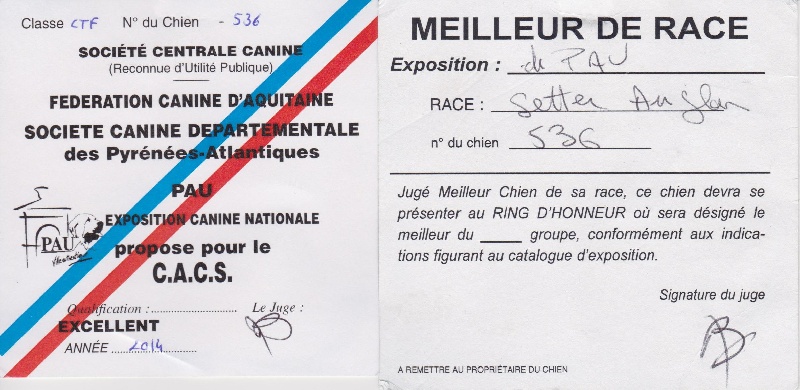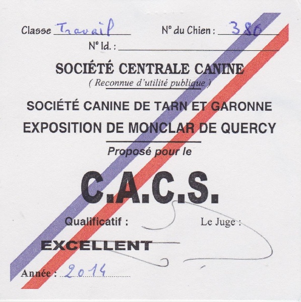 - 1er EXC CACS ; MEILLEUR DE RACE (classe travail)