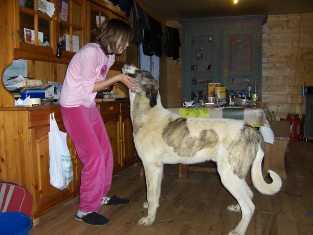 A-Equimono est un chien très svelte,saute sans élan presque 2 mètres,se tient sur les pattes arrières plusieurs secondes,il est très proche de notre famille,aime venir avec nous partout.