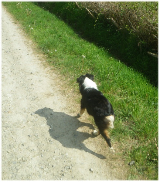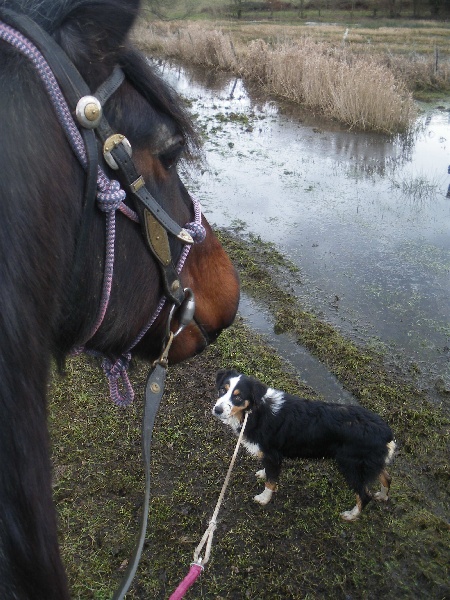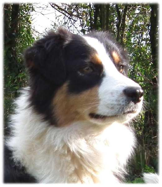 Tu étais une chienne d'un caractère particulièrement calme pour un australien, si fidèle et si proche de moi, sans être exubérante d'affection. Tu m'accompagnais à cheval, et pour ce faire, tu avais très bien intégré toutes les contraintes de la marche en liberté sur les routes.