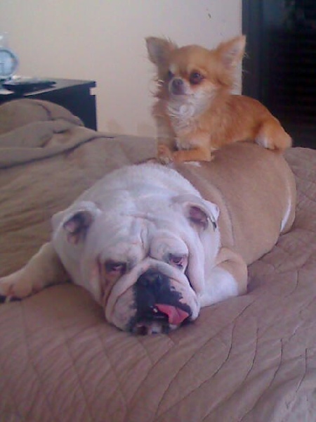 elle s'est occupée de l'éduction de Brooklyn "petite chihuahua 1kg800"qui du cou n'a peur de rien ni de personne elle se prend pour bulldog et de diva "petite femelle bullmastiff" mais la il y a un air de famille