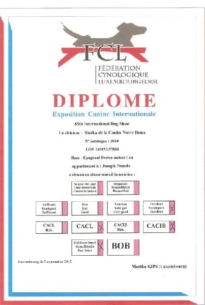 Avec ce résultat "BIATKA" devient donc Championne Internationale de Beauté après ses 2 CACIB obtenueen FRANCEle 4 décembre 2010 à ROUENle 1 mai 2011 à AMIENS