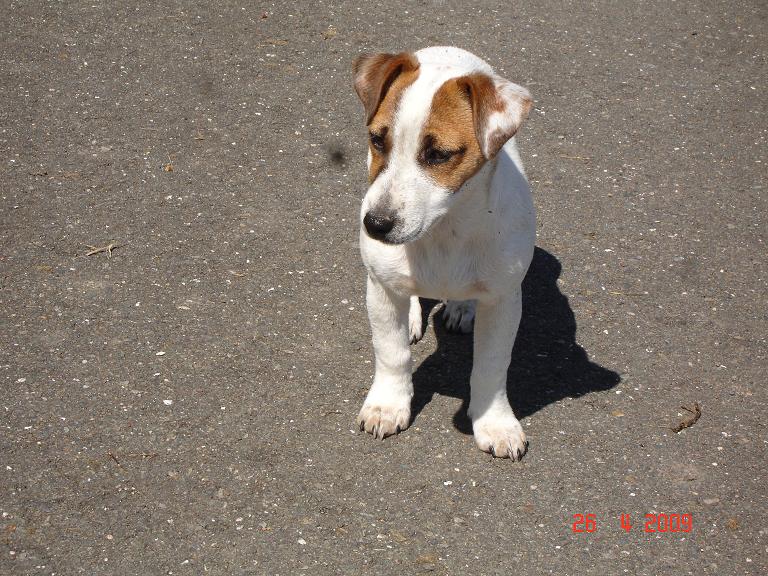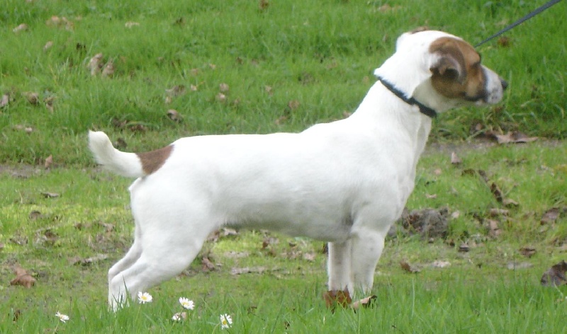 Taille 27 cm/tdp 39cm.Excellente tête , oreilles , oeil clair , chienne légèrement longiligne.poil blanc marqué de feu en tête et à la naissance de la queue.manque incisives inférieures ( accident , certificat vétérinaire)