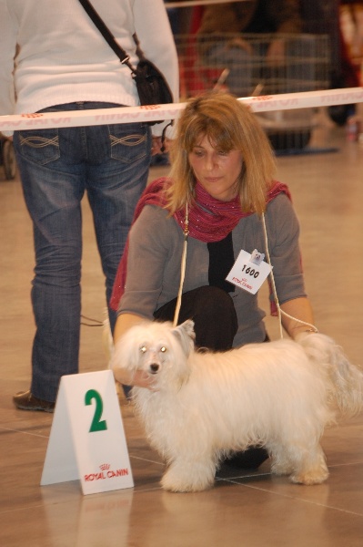 Excellent type et expression, belle tête, excellent oeil, oreilles bien placées, bonne ossature, bonne poitrine et dos. Chienne présentée un peu envelloppée. Très bon aplombs arrière, poils excellente logueur, couleur, texture. Excellent allure et port de fouet