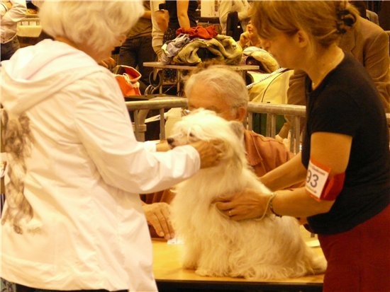 Très bon poil de houpette, excellent rapport crâne/chanfrein, excellent articulé, jolie sortie d'encolure, excellent angulation AV et AR, excellent ossature, excellent forme des côtes, queue bien insérée, bonnes proportions générales, excellent dessus, dessous. Queue bien portée, marche bien