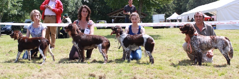 A l'aube de cette nouvelle année, il est temps pour moi de vous parler de l'année 2012.En effet, ce fut une très belle année pour le clos des Cookies tant en concours de travail qu'en concours de Beauté.Travail : quatre chiens furent présentés par mon dresseur : Gilles Carbillet. Au printemps et en été, trois sur quatre sont présentés, ils obtiennent plusieurs EXCELLENTS et des Très Bon, les concours d'été étaient particulièrement difficiles mais seules nos trois Münsterlander furent classés - FIDJI (fille de Bridgette)- DOUG ET DIABLO (2 frères, fils d'Azur du clos des Cookies). A l'automne, les 4 chiens sont présentés en Field et en BICP DIABLO : CACT et RCAT en Field - BICP 32/32 pts DOUG : RCACT gibiers Naturels - EXCELLENT en Field - BICP 31/32 pts - FLAVIE : 4 EXCELLENT en Field - BICP 30/32 pts FIDII : BICP 30/32 PTSRESULTATS : 4 chiens présentés - 4 TRIALERS - 4 SUJETS RECOMMANDES- DIABLO : CHAMPION DE RACE Beauté : objectif 2012 : obtenir pour les deux jeunes chiennes Flavie et Fidji le titre de CHAMPIONNE DE FRANCE et pour DOUG le titre de Champion Internationale FIDJI lors de la Nationale d'Elevage obtient le CACS et avec les 2 autres CACS obtient le titre de CHAMPIONNE DE FRANCE. FLAVIE lors du CHAMPIONNAT DE FRANCE obtient le CACS, elle remporte également le tire de CHAMPIONNE DE FRANCE. DOUG à l'exposition de Saarbruken (Allemagne) obtient le CAC-CACIB Meilleur de race RESULTATS : 3 chiens présentés - 7 CACS - 2 CHAMPIONNES DE FRANCE - 2 CACIB - 1 CHAMPION INTERNATIONALUne belle année non ! je tiens à remercier les propriétaires de DIABLO et FIDJI pour l'implication à l'inscription aux différents concours de leurs chiens ainsi qu'à Gilles pour sa patience et son efficacité dans la présentation de cette petite équipe - petite mais efficace.