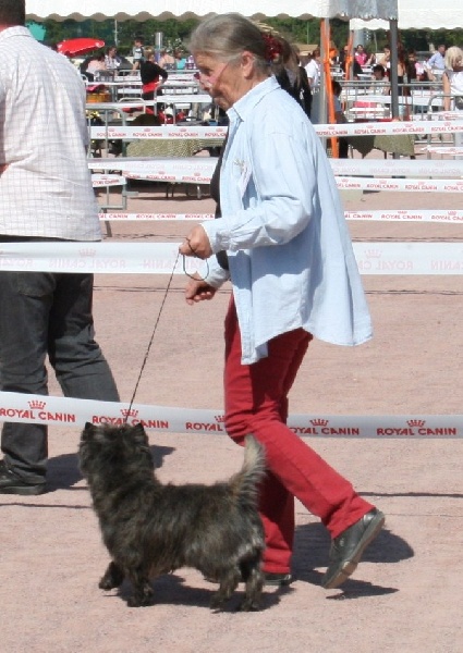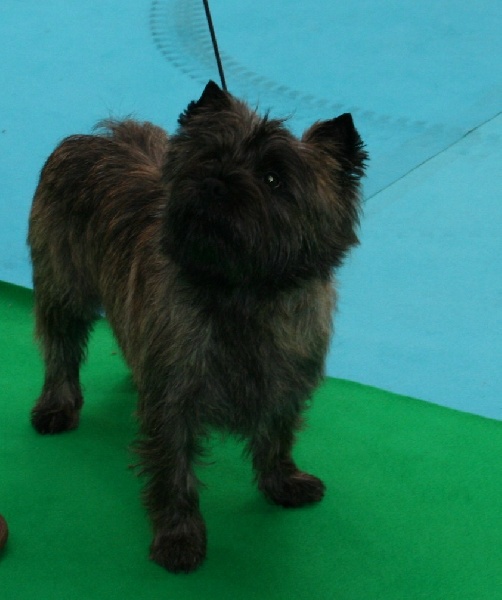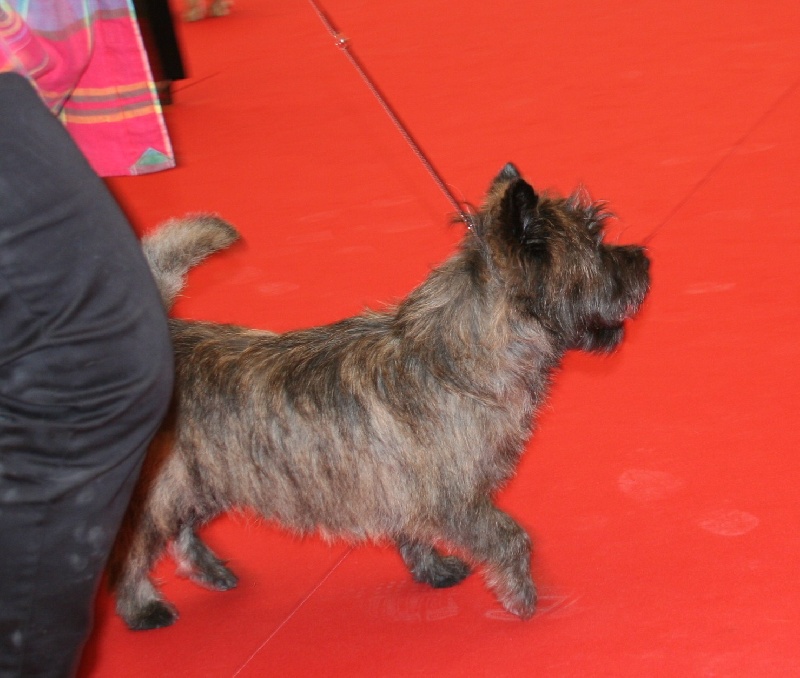 Beau sujet vif très Cairn , belle tête chanfrein bonne longueur , j'aimerais un meilleur port d'oreille, encolure un peu courte , trés bonne ligne de dos , fouet bien attaché et bien planté, bonnes cotes . B. avant et arrière main TB musclé B. poils ,B mouvement