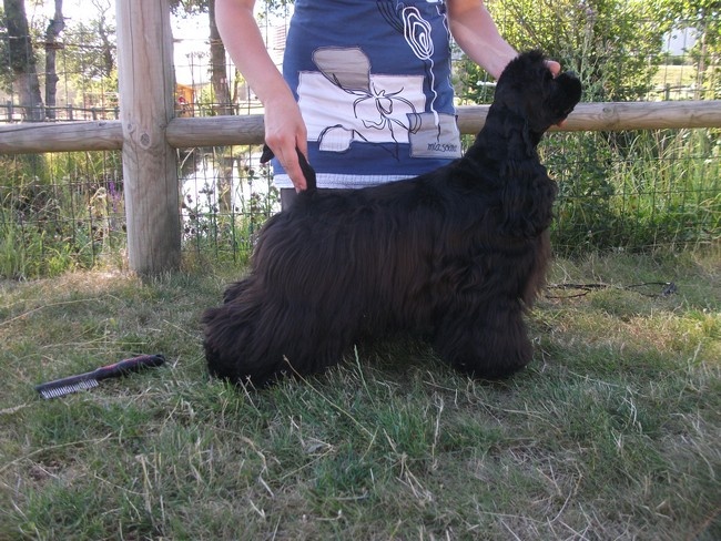 Joli petit modèle, joli tete, bonne encolure, bonne ossature, bonne angulation et att de fouet, le corps doit se faire, corps courtBonne qualité et densité de fourrureMarche bien