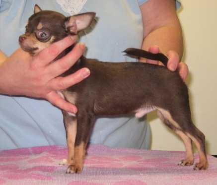 Chien très compact de petit gabarit . Donne de superbes chiots, chocolats, bleus, noirs et particolores.