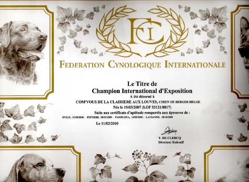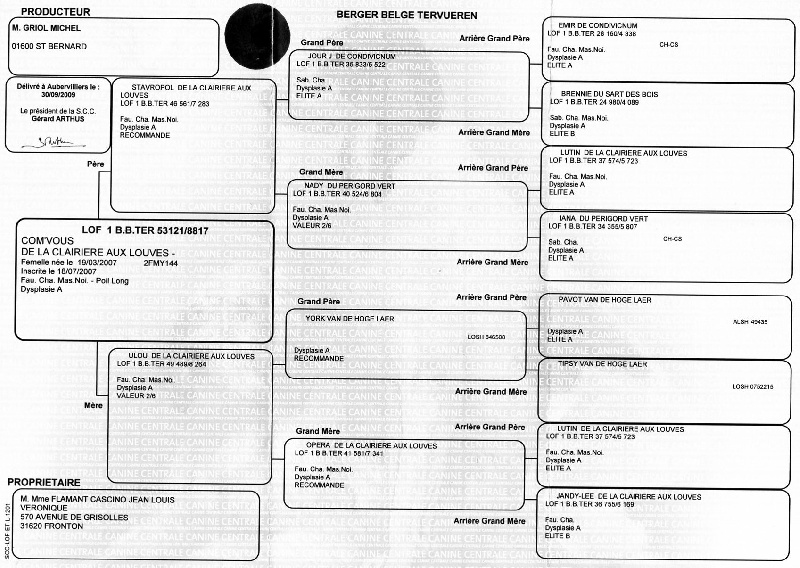 Pédigree de CH. Com'vous De la clairiere aux louves