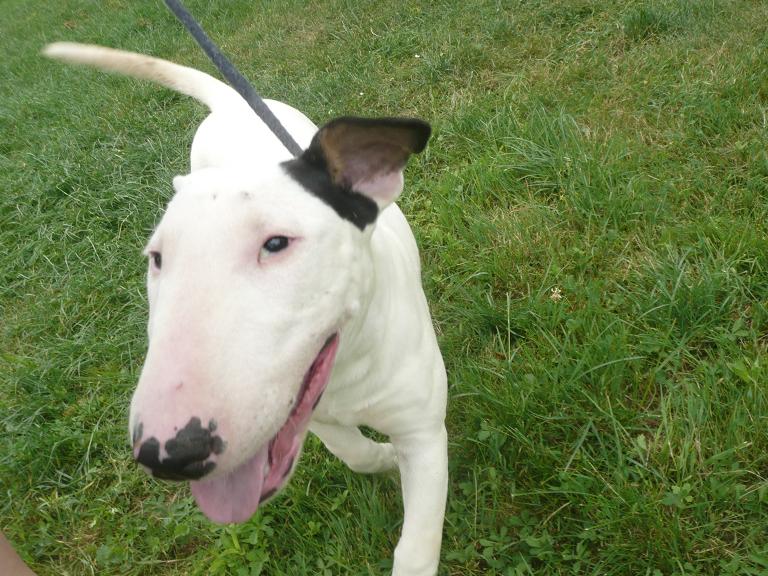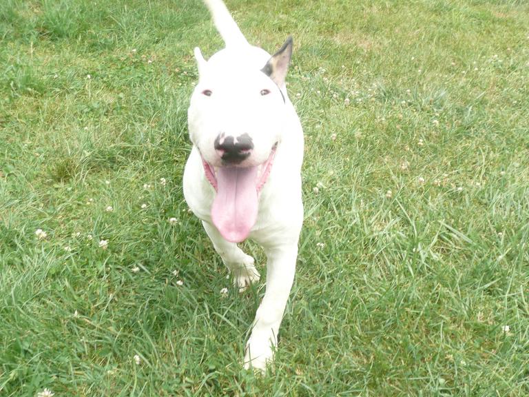 Notre seule bullette blanche, sociable et joueuse, elle complète parfaitement la famille!!!