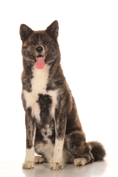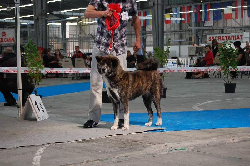 Chienne de bonne proportion et présentation, tête bien dans le type, expression féminine, oreilles bien placées, oeil foncé et couleur brune, excellente pigmentation, urajiro marqué, poitrine bien descendue, fouet, aplomb et angulation corrects, démarche correcte.
