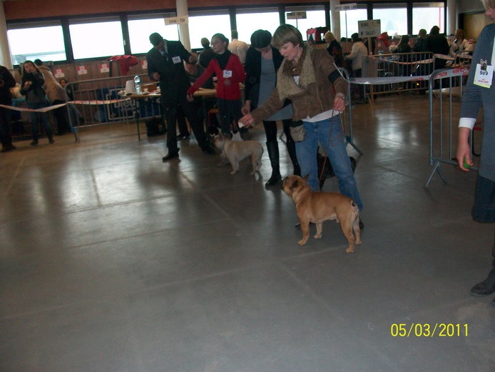 CLASSE INTERMEDIAIRE fauve-tête bien typée-TB dentition-B largeur de maxillaire-narines B ouvertes-nez B remouché-Exc format et port d'oreilles-B encolure-B forme de poit,doit s'éclater-TB dessus-angulations B marquées-B pieds-B compact-serre arrière-B parallèle avant