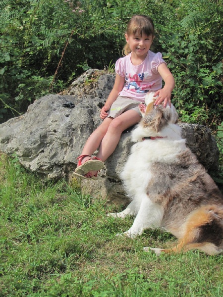 Notre Sioux, elle est la fille du fabuleux CH U'iroquois fire keeper de Solemel, titré Champion du Monde de Beauté - WDS Winner (voir sa fiche à la rubrique parents). Elle si jolie avec ses yeux vairons. Une vraie peluche, câline, gentille et facile, elle est toujours présente et gaie. Elle apprécie plus que tout les enfants avec lesquels elle peut jouer pendant des heures. Très obéissante, elle est une compagne idéale à la maison comme en balade.