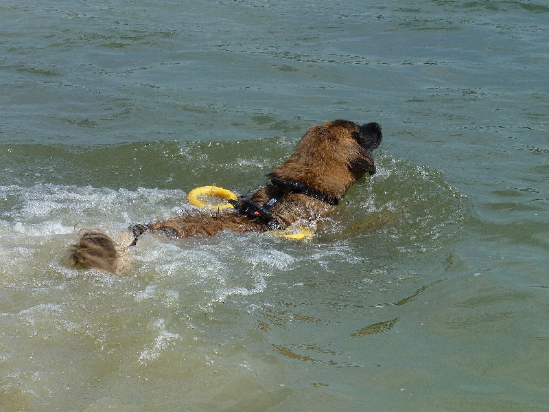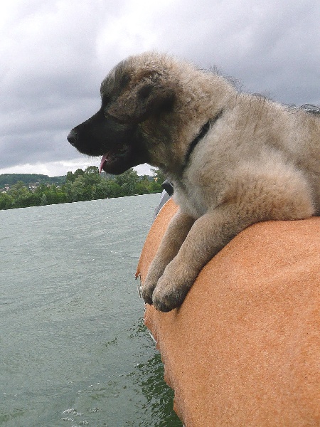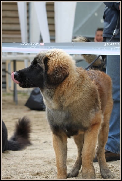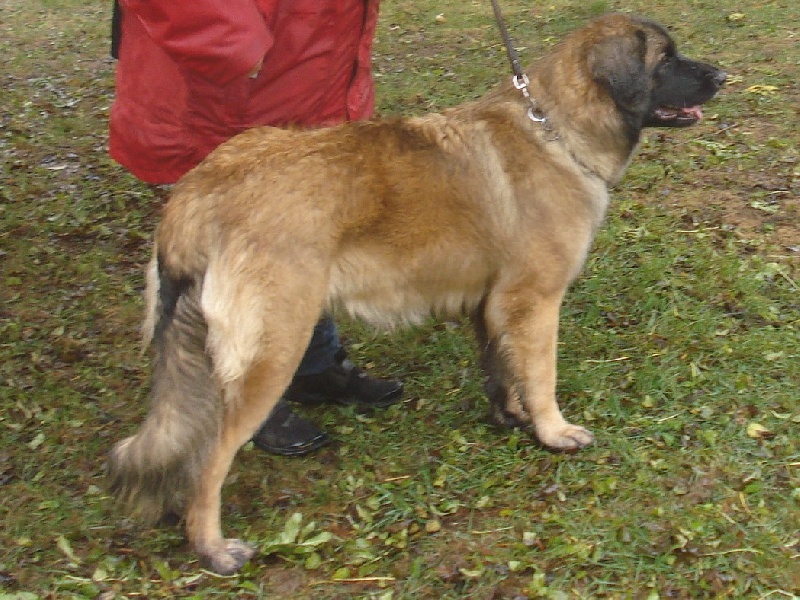 19 mois - DCC - chien de bonne taille - excellente ossature - exc. proportion de tête - exc. masque plus pigmentation - oeil pourrait être plus sombre - exc. expression - exc. angulation AV/AR - très bons aplombs AV/AR - poitrine doit encore s'ouvrir et descendre - exc. couleur fauve légèrement méchée - exc. fouet - exc. déplacement de profil - sert à l'arrière en aller/retour - fouet enroulé à la marche - exc. caractère.